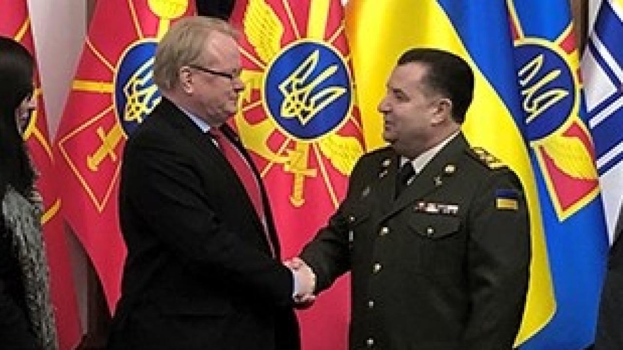 Försvarsminister Peter Hultqvist (S) träffade på måndagen Ukrainas president Petro Porosjenko och landets försvarsminister Stepan Poltorak i Kiev.