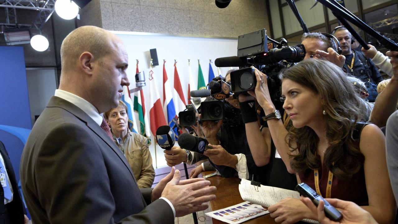 – Oavsett om Sverige går med så kommer finanstillsynen finnas i vår närhet, i Finland, Estland och Tyskland, länder vi handlar med. Då måste vi ha en seriös attityd, vara pålästa och påverka, sade Fredrik Reinfeldt till svenska journalister efter mötet.