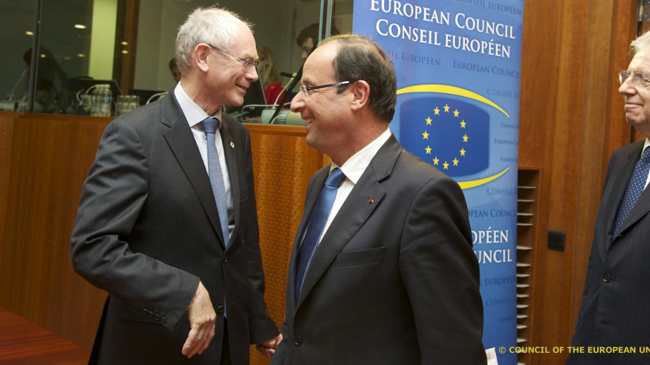 BRYSSEL 24 maj 2012 | Hollande drog det längsta stråetEfter det informella EU-toppmötet sade Herman Van Rompuy att han ska ta fram nya förslag på hur EMU kan fördjupas, inklusive på hur euroobligationer kan införas – ett rött skynke för Sverige och Tyskland.